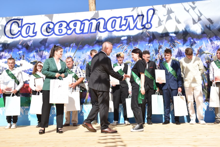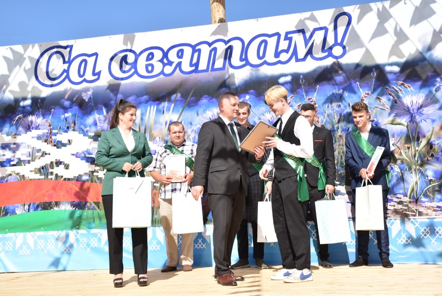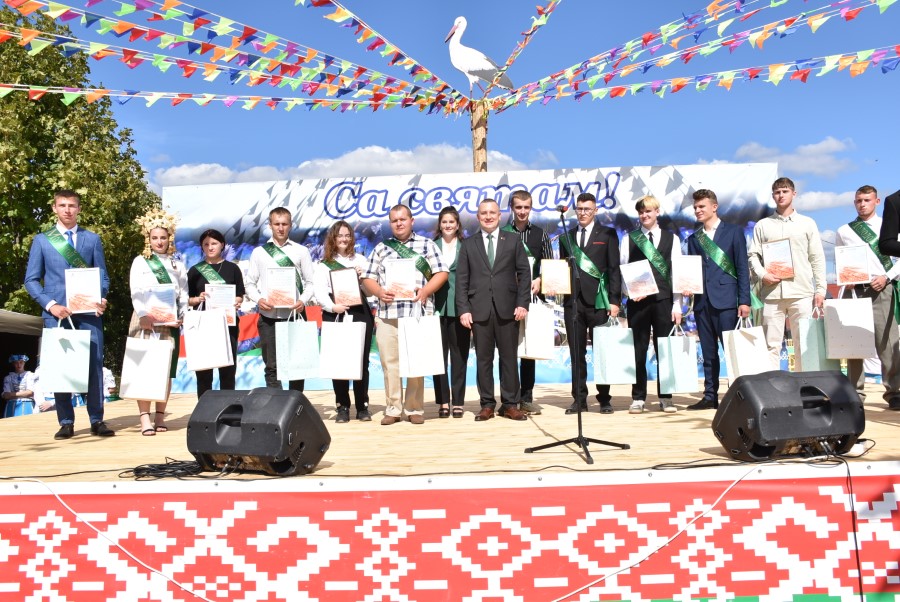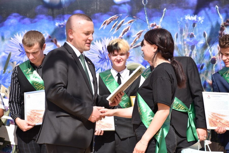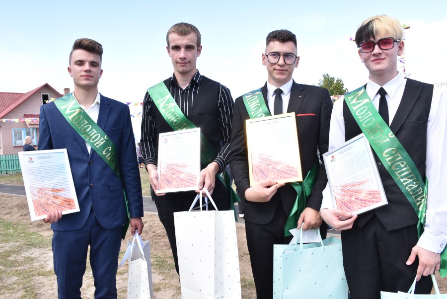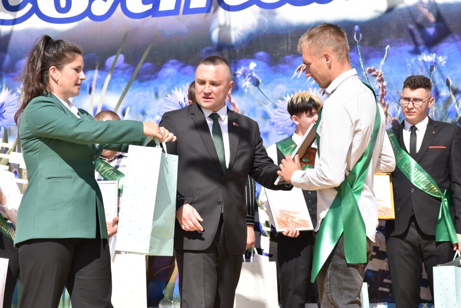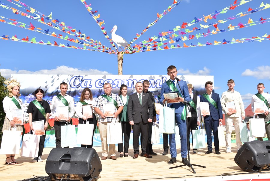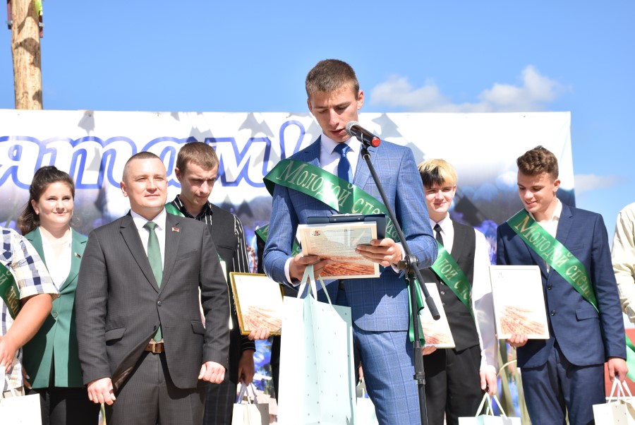 Но не только они были героями сегодняшнего праздника. Вот на сцене появляется целая плеяда молодых специалистов, которые поднялись сюда, чтобы получить напутственные письма от районного исполнительного комитета. Со словом в ответ выступил начинающий заведующий ремонтной мастерской СУП «АгроМАЗ» Алексей Климович.