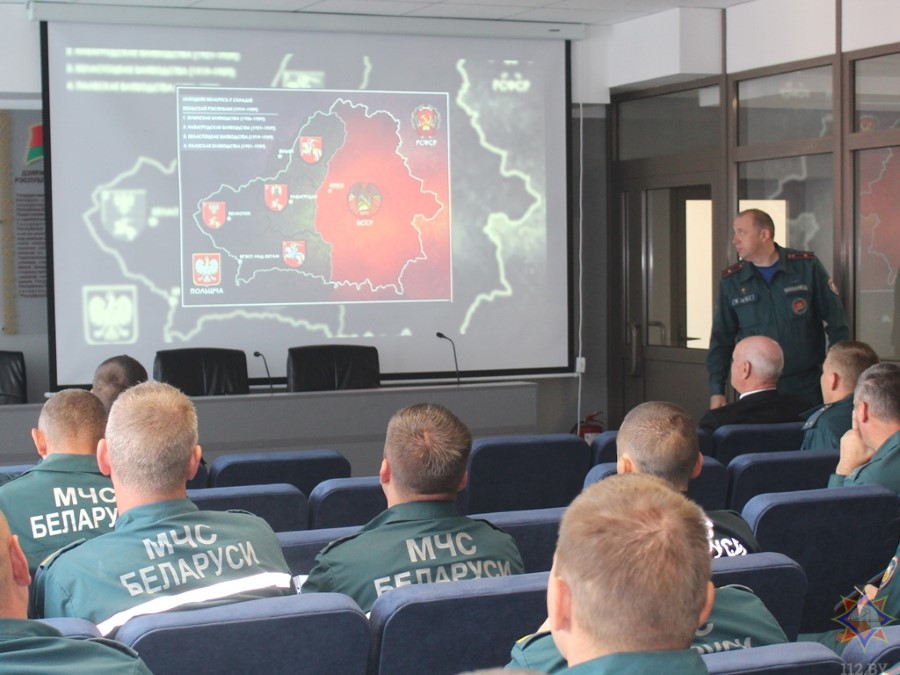Повесткой стали актуальные события в жизни нашей страны, информация об истории праздника и основах гражданско-патриотического воспитания населения. Почетным гостем на мероприятии стал председатель Березинского районного Совета ветеранов Анатолий Николаевич Зябко. Спасатели посмотрели видеофильм о важных общественно-политических событиях, происходивших в историческом прошлом, ведь именно они заложили фундамент нынешнего благополучия нашей Родины.