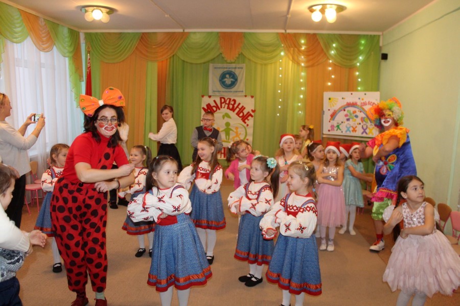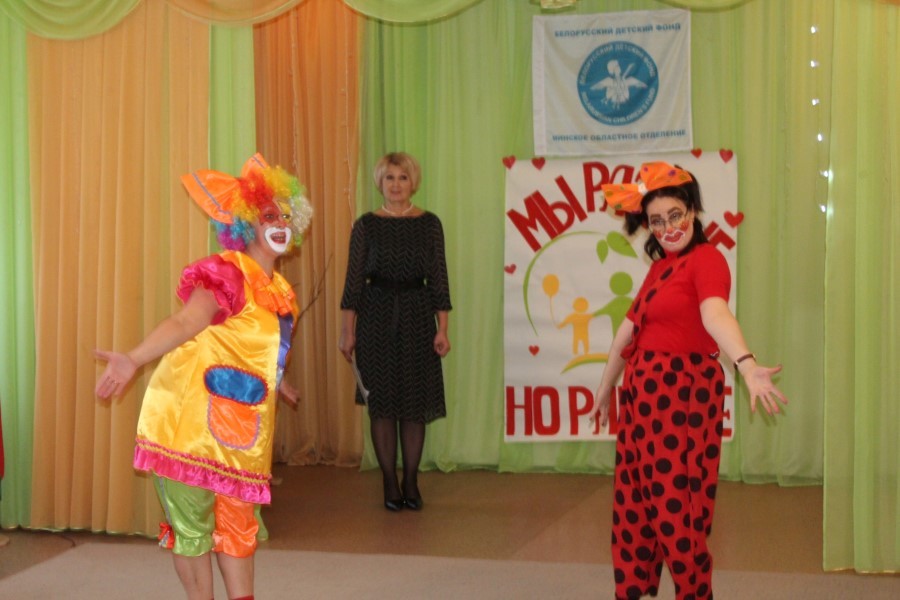 Затем бразды правления на мероприятии взяли веселые клоуны Клёпа и Веселинка, которые не только веселили ребят и гостей, но и с помощью детей создавали картинку из отдельных ее элементов. А пока работа эта не была завершена, своим творчеством радовали воспитанники дошкольных учреждений. Так, ребята из коррекционного центра показали сценку «Два веселых гуся», Алина Лапытько и Алиса Креер подготовили для гостей песню, еще одну песню исполнили воспитанники четвертого детского сада, прошли под громкие аплодисменты и исполненные детьми танцы «Белорусочка» и «Танец с рукавичками». А в конце мероприятия в пляс пустились все ребята, включившись в танец «Дружба».