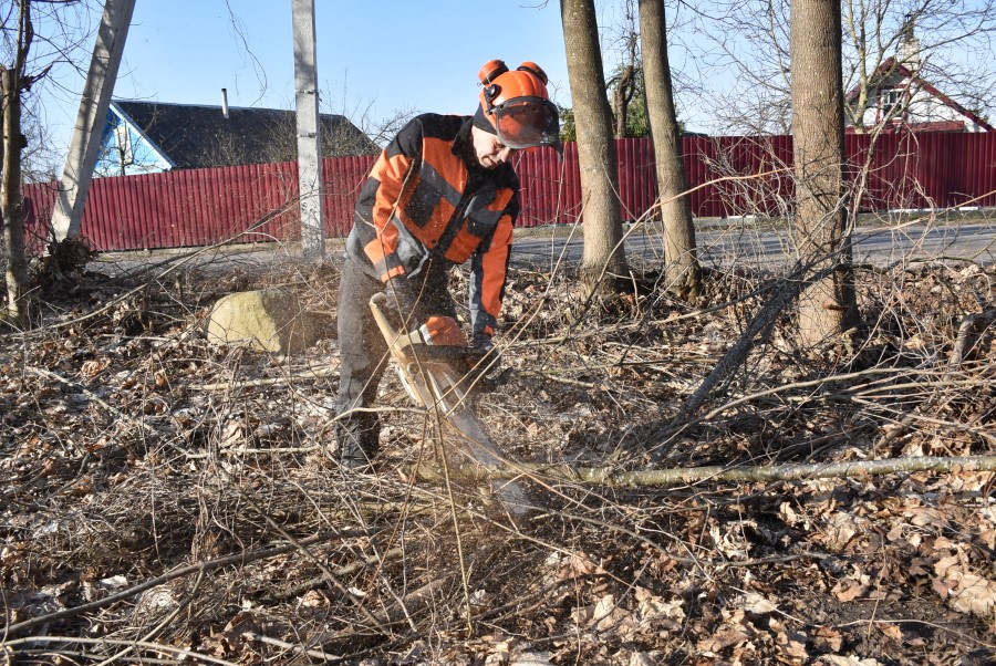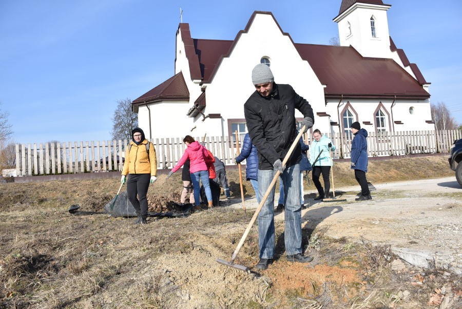 Работники энергогазинспекции Госэнергогазнадзора наводили порядок также на улице Ульянова, работники лесхоза – на территории, прилегающей к костёлу.