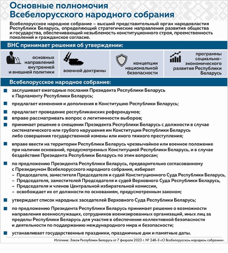Таким образом, в нашей стране за последние несколько лет осуществлен целый ряд комплексных изменений, касающихся формирования органов государственной власти, – после внесения изменений и дополнений в Конституцию как парламентским путем в 2021 году, так и по итогам республиканского референдума, состоявшегося в феврале 2022‑го. Отмечая, что в том же ряду после проведения единого дня голосования и выборов членов Совета Республики стоит и избрание делегатов Всебелорусского народного собрания, конституционный статус которого закреплен по результатам республиканского референдума 2022 года, член Научно‑экспертного совета при ЦИК, декан факультета права БГЭУ Александр Шкляревский резюмирует: