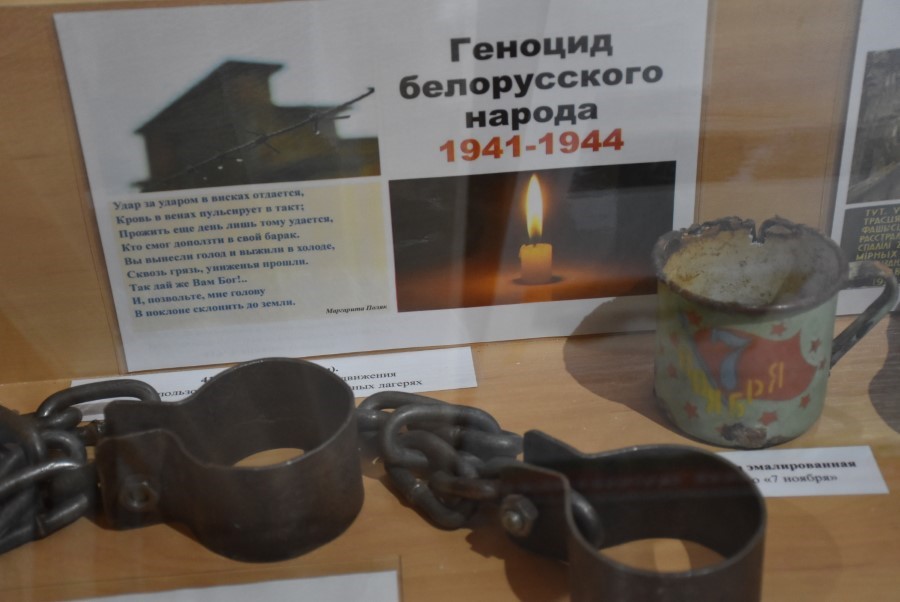 Что такое геноцид, сегодняшние белорусские дети знают, слава Богу, лишь из рассказов педагогов, дедушек и бабушек, родителей, фильмов про войну и книг. «Массовое уничтожение» – объясняют они значение упомянутого слова. Экспозиция, посвященная данной теме, занимает в музее особое место.