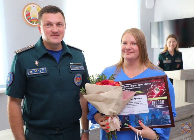 Продолжением мероприятия стала торжественная церемония награждения победителей областного творческого конкурса на лучшее освещение в СМИ деятельности органов и подразделений по ЧС и основ обеспечения безопасности жизнедеятельности. Дипломы, сувениры и цветы вручил начальник областного управления МЧС Сергей Лапанович.