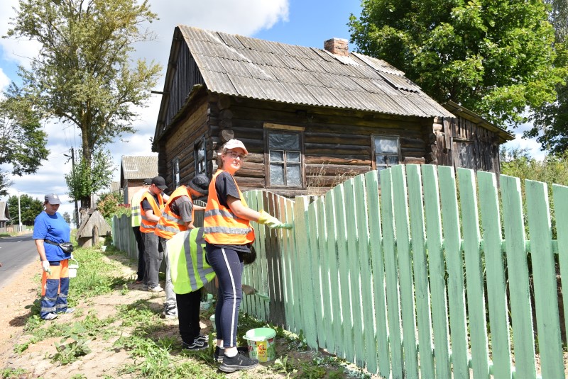 Двигаясь по улице деревни, отмечаем аккуратно установленные заборы. Видно, что их недавно красили. А вот и маляры – члены студенческого отряда, созданного при Березинском ЖКХ из числа старшеклассников и выпускников. Для некоторых из них это последнее лето детства, и уже в сентябре они станут студентами престижных вузов. А сегодня под руководством рабочей бригады по благоустройству и озеленению Марины Овчаренко во всю наводили порядок. Молодцы, ребята, не сидят без дела!