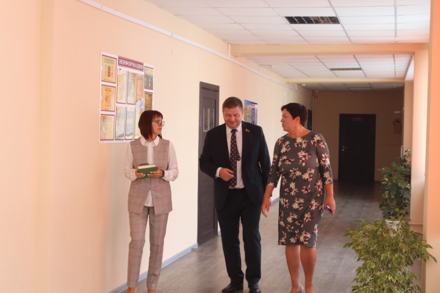 Директор школы Алла Дудко провела депутата по аудиториям, показала, какой ремонт сделан в этом году, ознакомила с имеющимся оборудованием и инвентарем. Рассказала о педагогическом составе учреждения, об учащихся и их достижениях.