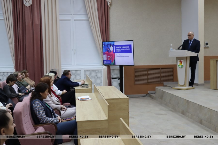 Дмитрий Матусевич рассказал о ходе электоральной кампании, о явке избирателей на досрочное голосование в предыдущие выборы, участии в выборных кампаниях абсолютного большинства белорусов, ознакомил собравшихся с аналитическими данными социологических исследований на тему доверия народа национальному лидеру и правительству страны, и привёл множество жизненных примеров.