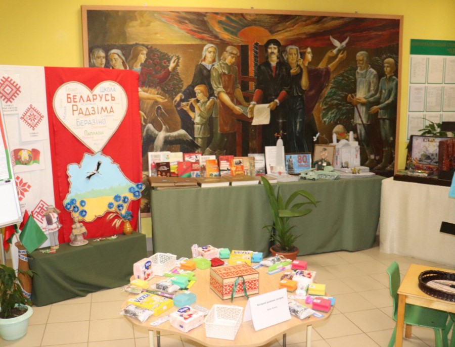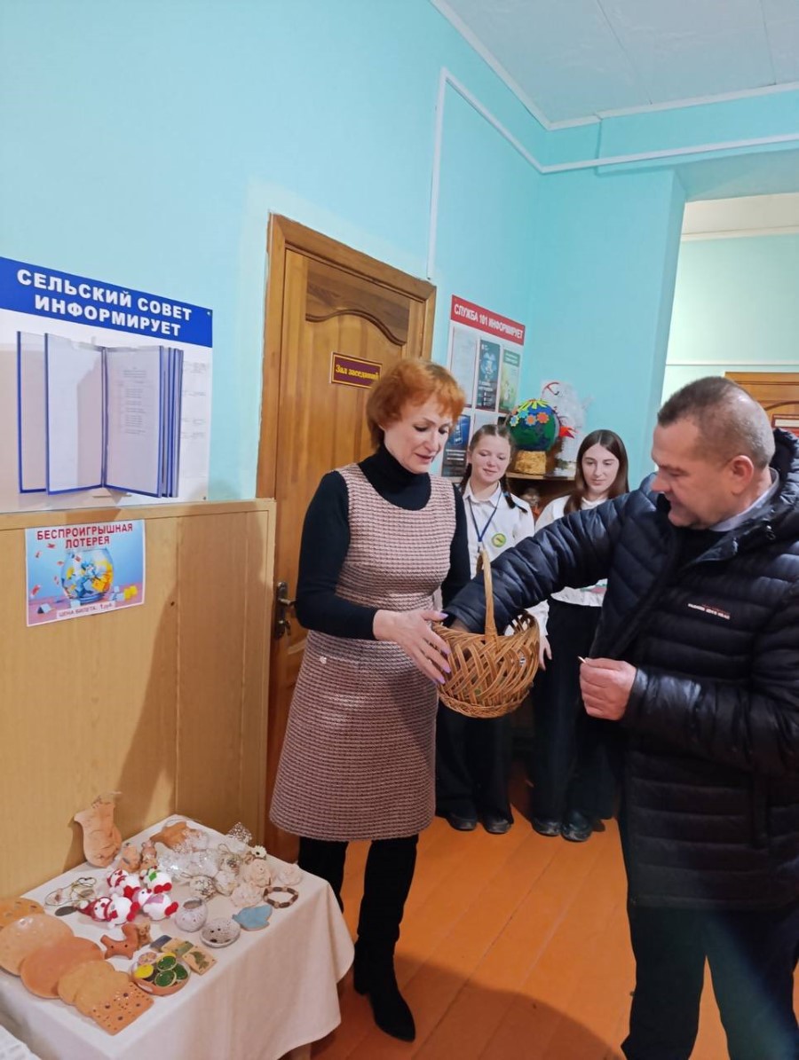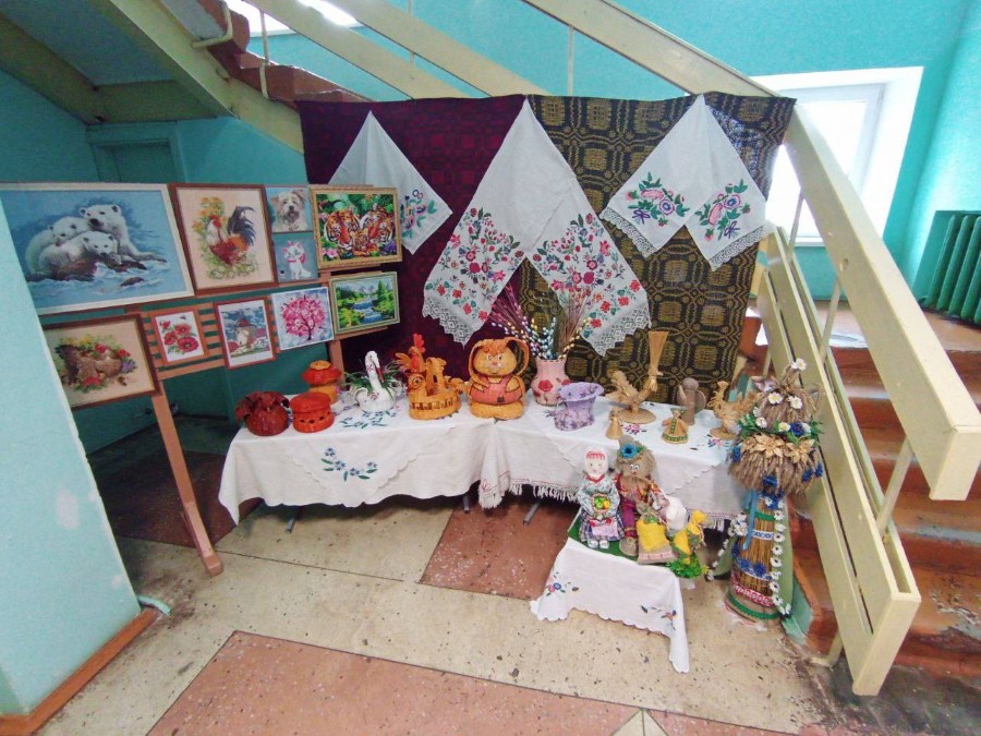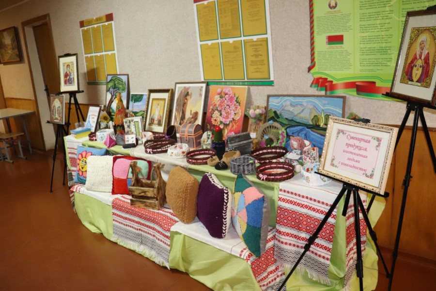 На избирательном участке номер 7 в Ушанском СДК также оформлены выставки и продажа продукции Березинского филиала Минского облпо, выставка картин.