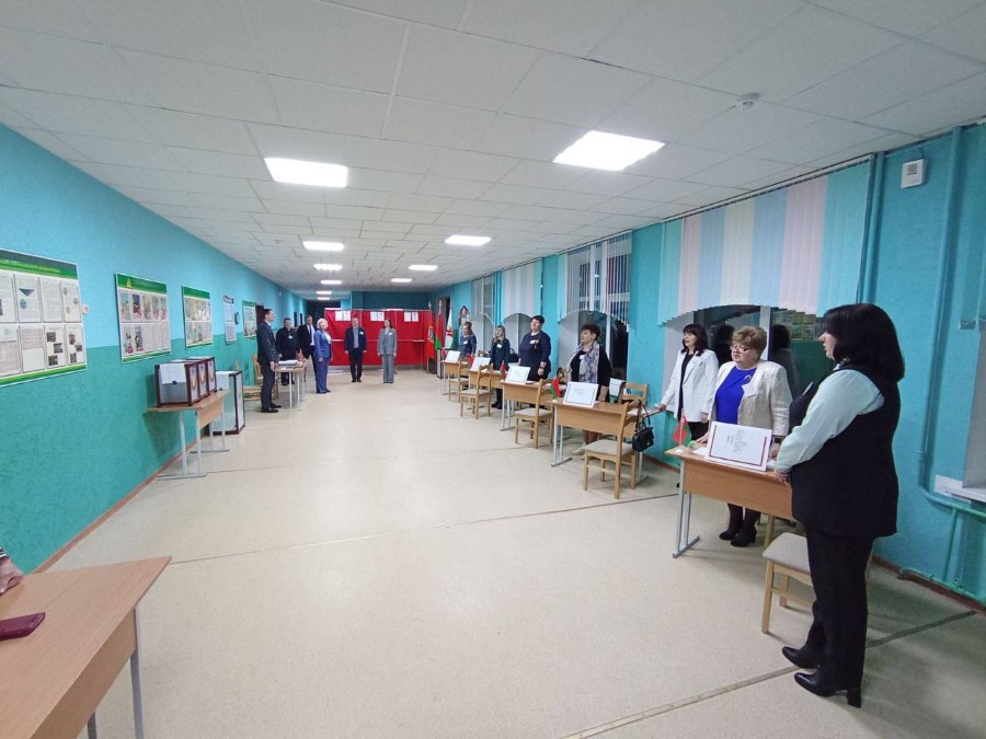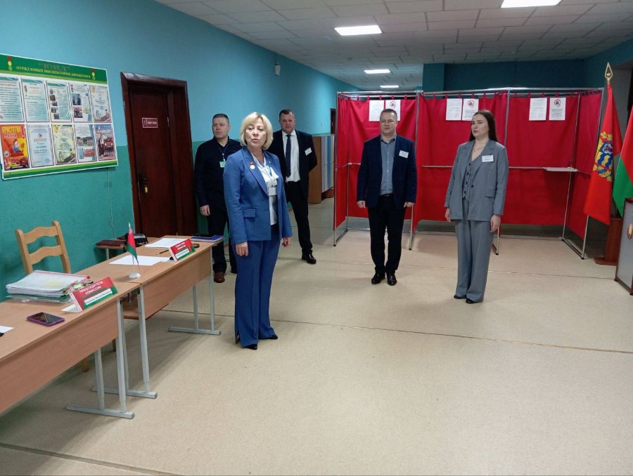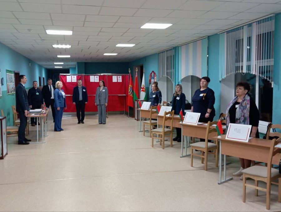 На всех участках для голосования в 8.00 прозвучал Государственный гимн Республики Беларусь. На участке номер 1 председатель избирательной комиссии Светлана Абрамович поздравила членов комиссии и наблюдателей с праздником. День выборов начался.