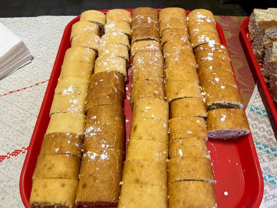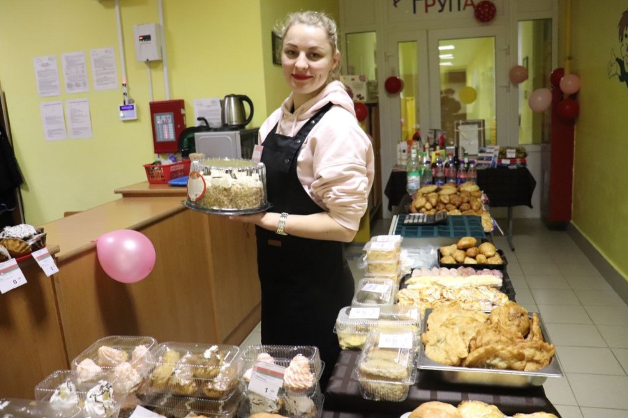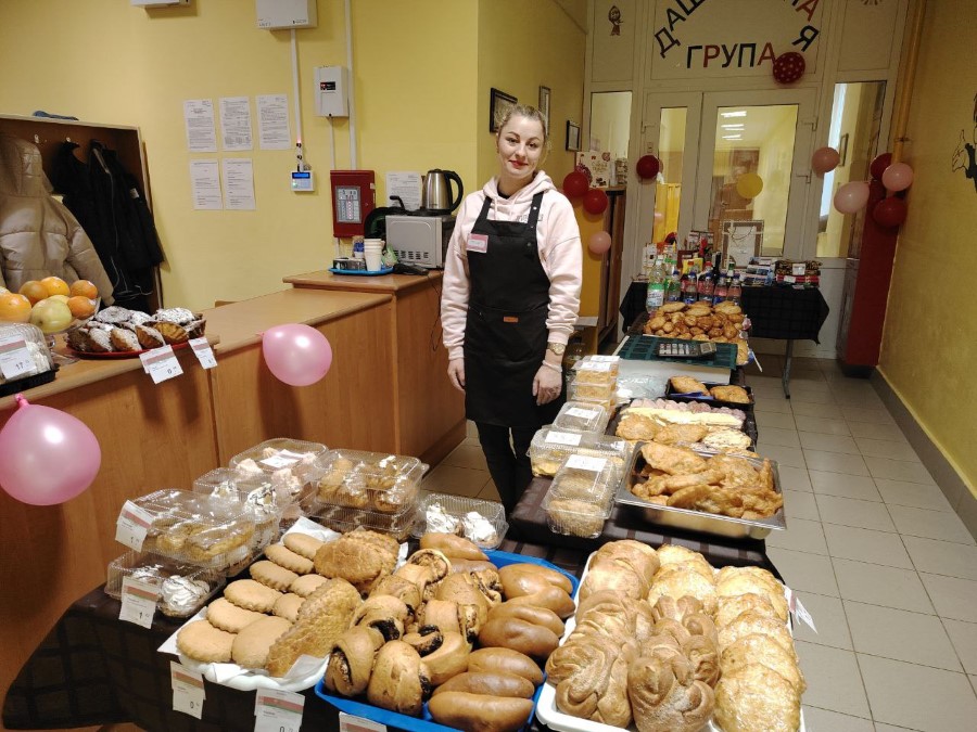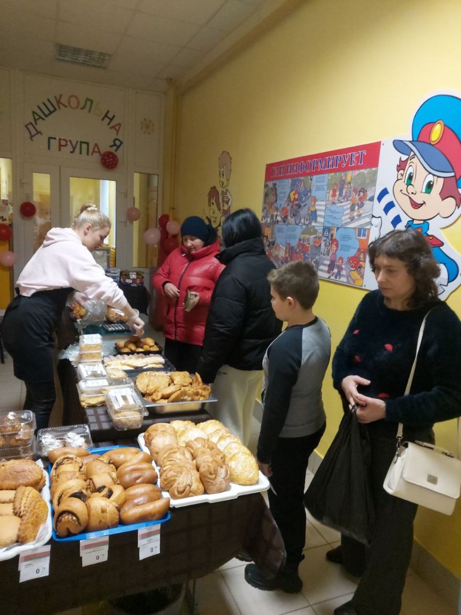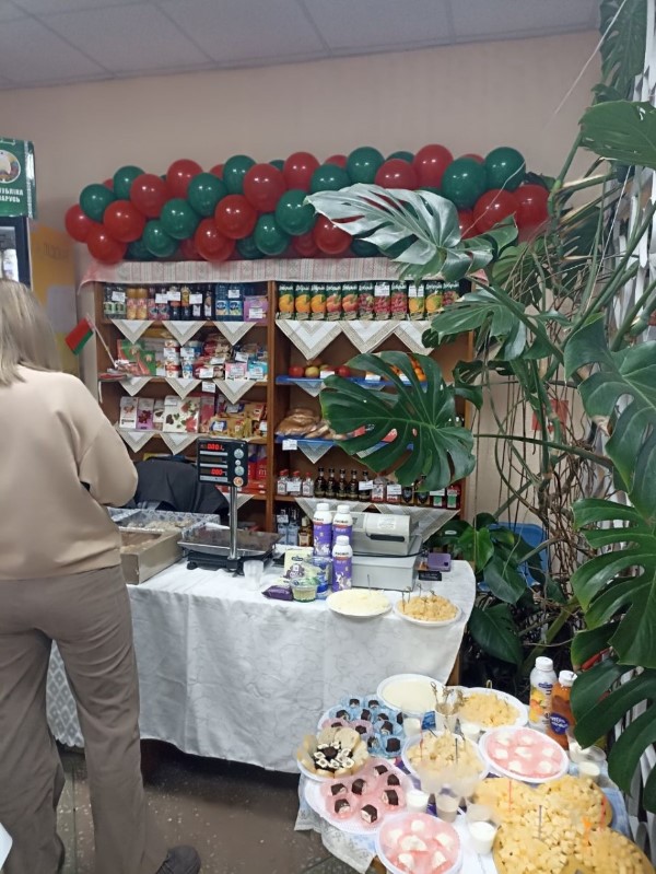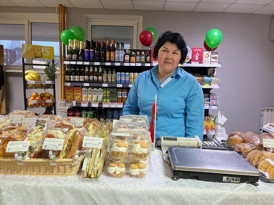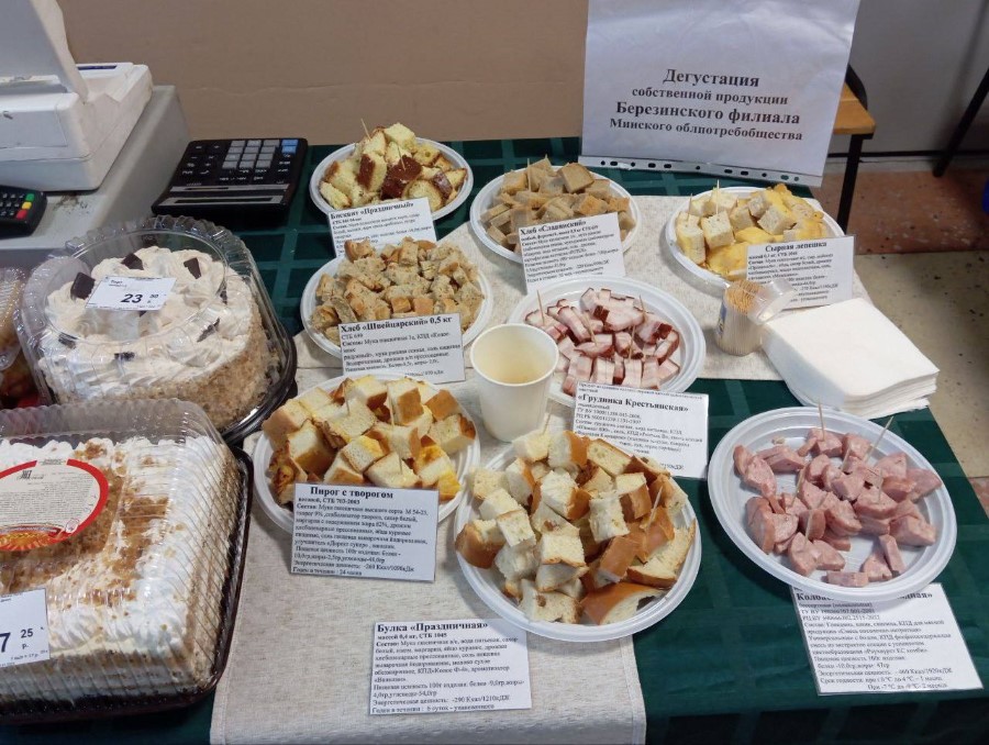 Здесь работает и выездная работа Березинского филиала Минского облпо. В продаже есть свежая выпечка, торты и сладкие напитки на любой вкус.