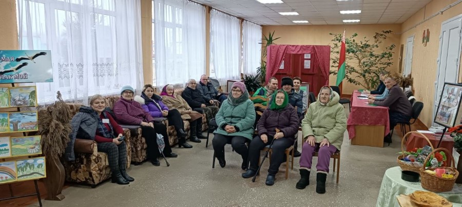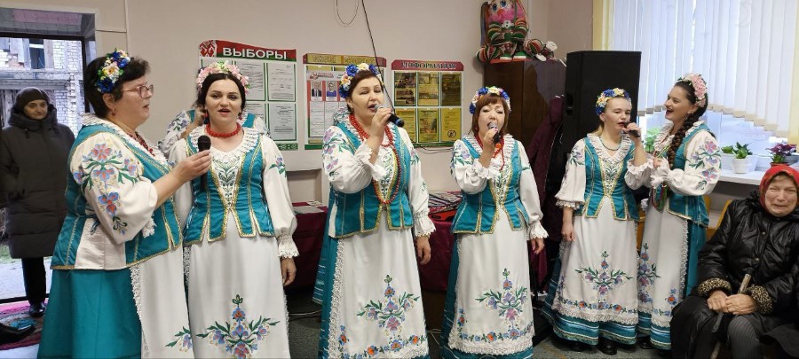 Народный ансамбль песни "Лявониха" на избирательном участке в д. Каменный Борок с концертной программой "Песнi роднага краю".