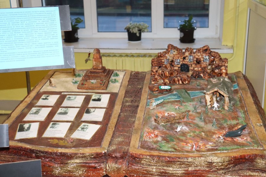 В фойе поплавской участка для голосования организована выставка военно-патриотической тематики на которой представлены рисунки школьников и поделки местных умельцев.