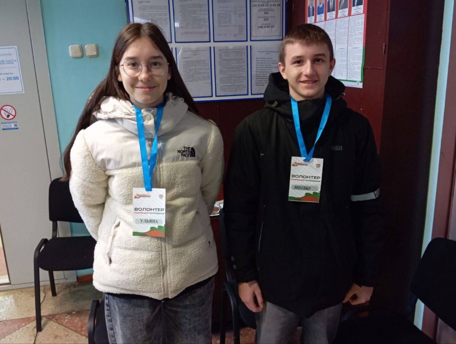 На избирательном участке номер 2 в Березинском РЦК дежурят волонтёры, активисты БРСМ Мария Еремица и Владислава Метельская.