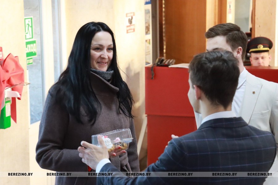 Женщин, входящих сегодня утром в здание Березинского райисполкома, ожидал приятный сюрприз в виде оригинального поздравления с наступающим праздником 8 Марта, добрых слов, тёплых пожеланий, живой музыки и пирожных – чтобы предпраздничный день был полон сладости, отличного настроения и сбывшихся надежд.