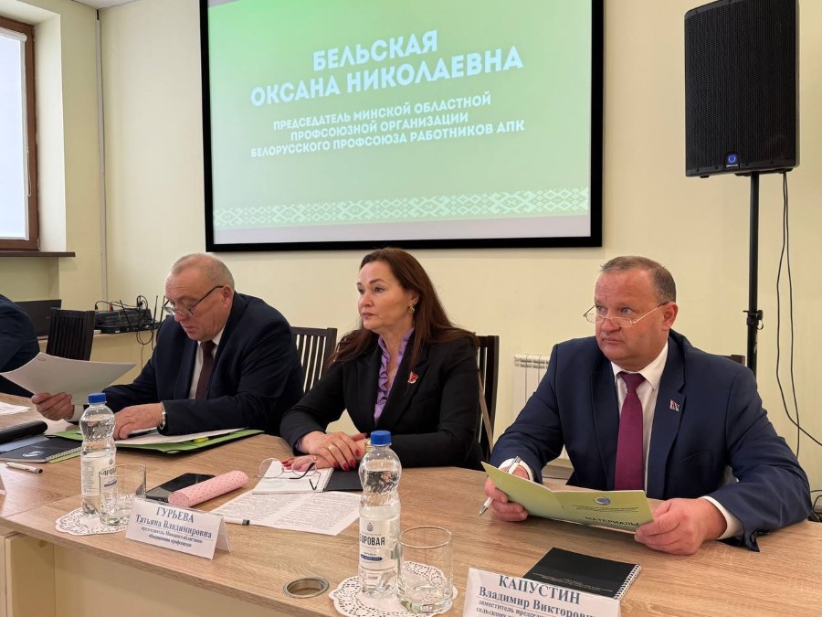председатель Белорусского профсоюза работников агропромышленного комплекса Василий Хватик, председатель Минского областного объединения профсоюзов Татьяна Гурьева, заместитель председателя комитета по сельскому хозяйству и продовольствию Минского облисполкома Владимир Капустин.