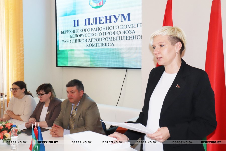 Сегодня состоялся второй пленум Березинского районного комитета Белорусского профсоюза работников агропромышленного комплекса. На нем с докладом об итогах работы Березинского райкома профсоюза Белорусского профессионального союза работников АПК за 2024 год и задачах на 2025 год выступила председатель райкома отраслевого профсоюза Екатерина Аврамчик.