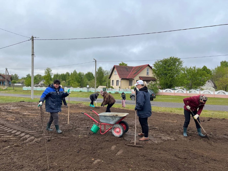 - Все вместе наводим порядок на нашей Березинщине, - говорит глава района. - Сегодня работаем в Косовке, для детишек установим детскую площадку. Будем наводить порядок во всех наших деревнях и агрогородках