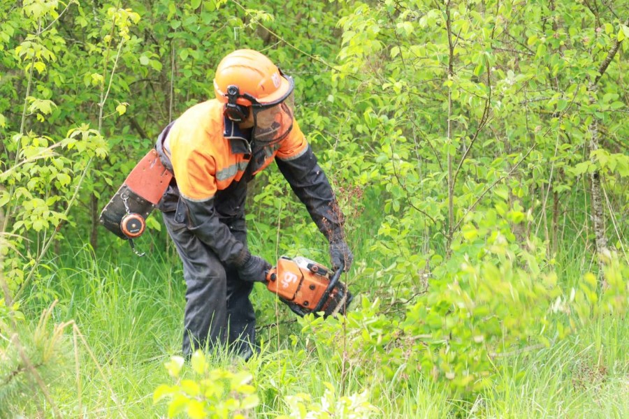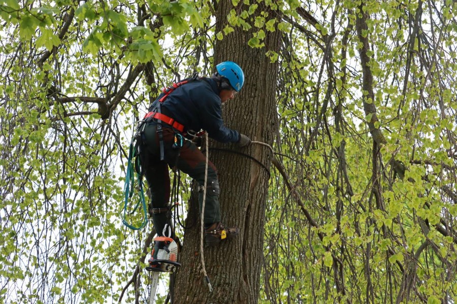 Альпинисты Березинского ЖКХ занимаются удалением деревьев в Косовке