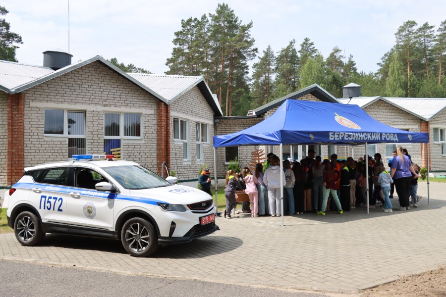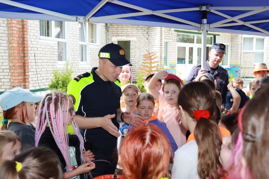 Дальше ребят ожидала интересная интерактивная площадка, организованная Березинским РОВД. Милиционеры рассказывали об оружии, которым владеют стражи правопорядка и о правилах дорожного движения и задавали тематические вопросы. А за правильные ответы раздавали сладкие призы и разрешали посидеть за рулём и посигналить в автомобиле Госавтоинспекции.