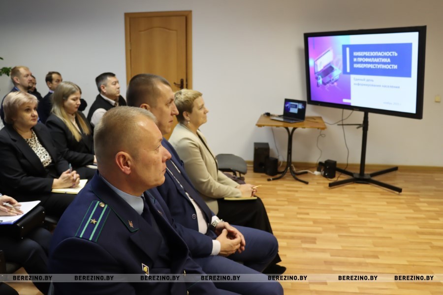 Темой единого дня информирования была «Кибербезопасность. Профилактика киберпреступности». С докладом выступил начальник Березинского РОВД Вадим Конопацкий. Присутствующие услышали компетентное мнение по вопросам киберугроз, узнали, как защититься от интернет-мошенников, ознакомились с примерами из жизни.
