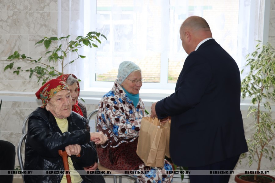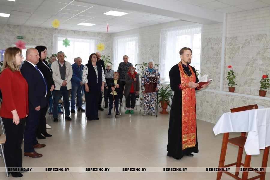 В Березинском районе гости во главе с председателем райисполкома Андреем Соколовским, заместителем председателя Алесей Титовой, начальником управления по труду, занятости и социальной защите Вероникой Джигеро, директором ТЦСОН Еленой Желудевой и настоятелем храма отцом Василием Васильковым посетила отделение круглосуточного пребывания для граждан пожилого возраста и инвалидов в деревне Дулебы.