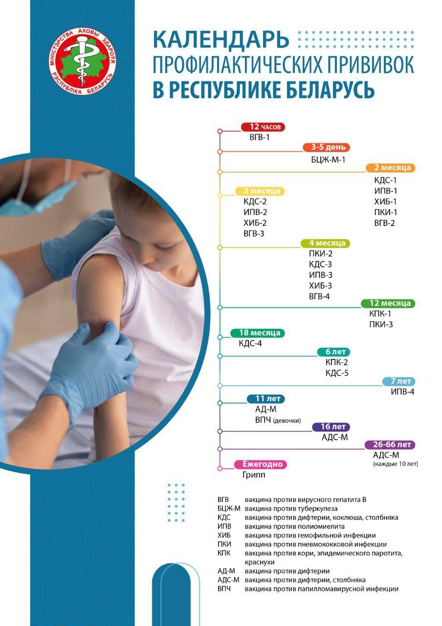 В обновленный календарь планируется ввести вакцинацию против пневмококковой инфекции всех детей в возрасте до 1 года (трехкратно — в 2, 4 и 12 месяцев). Это общемировая практика управления эпидемическим процессом пневмококковой инфекции и является актуальной для Республики Беларусь. Еще одна прививка будет против инфекции, вызываемой вирусом папилломы человека (ВПЧ-инфекция), вакцинировать начнут девочек 11 лет. Это обусловлено необходимостью сформировать защиту до начала половой жизни и наиболее целесообразно исходя из программных аспектов организации вакцинации. Кроме того, вводится бустерная вакцинация против коклюша в возрасте 6 лет.